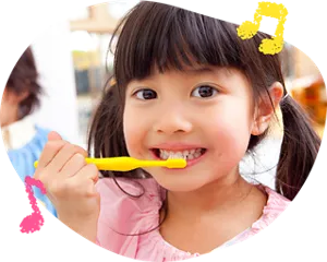 歯磨きソングは、歌詞やリズムでキッズが楽しく歯磨きできるように作られています。