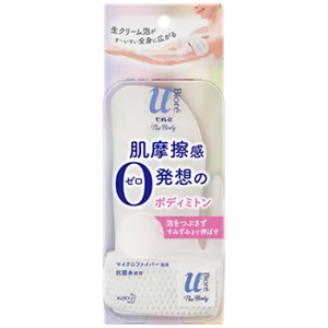季節の変わり目でカサつきがちな肌に。肌摩擦感0発想の泡タイプ用ボディミトン「ビオレu ザ ボディ 泡タイプ用ボディミトン」 生クリーム泡がす~いすい全身に広がります!ビオレu ザ ボディ 泡タイプボディウォッシュとの併用がオススメです。