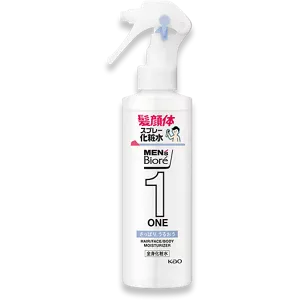お父さんの朝の忙しい身支度には「メンズビオレONE 全身化粧水スプレー さっぱり 本体」で手軽に保湿。スプレーだからシュッとするだけ、手を汚さず、ラク、時短!寝ぐせ直しにもぴったりです。
