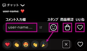下部に表示されるスタンプやいいねボタン、コメントを使ってライブに参加できます。