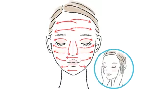 ③内側から外側に向かって手のひらを密着させ、ゆっくりとなじませます。