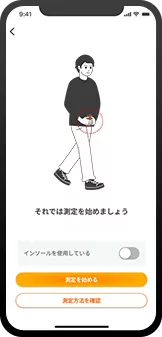 スマホをおへその下にあて、測定開始