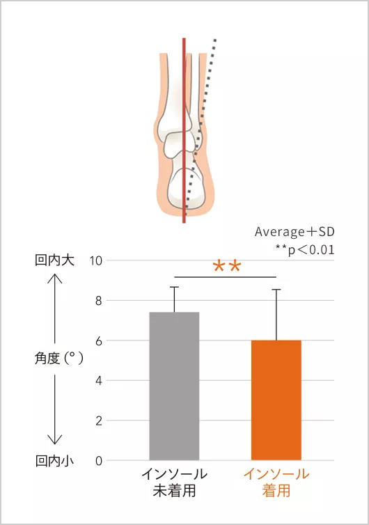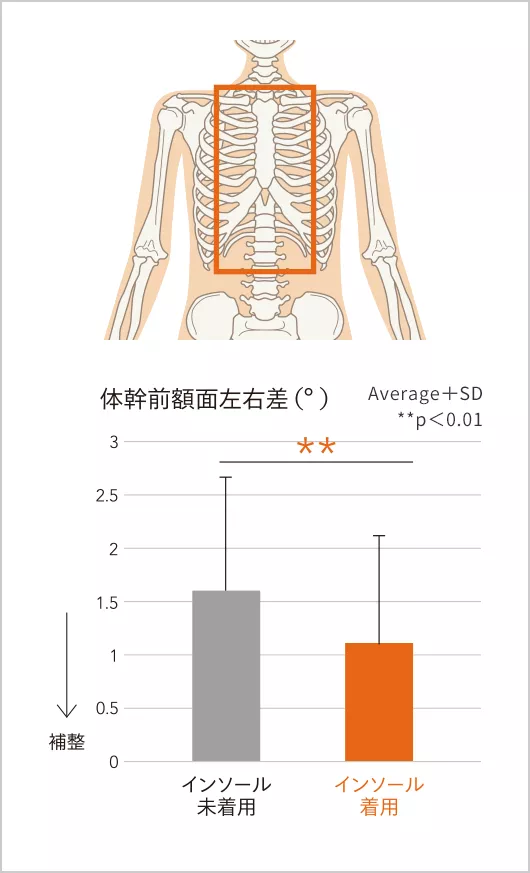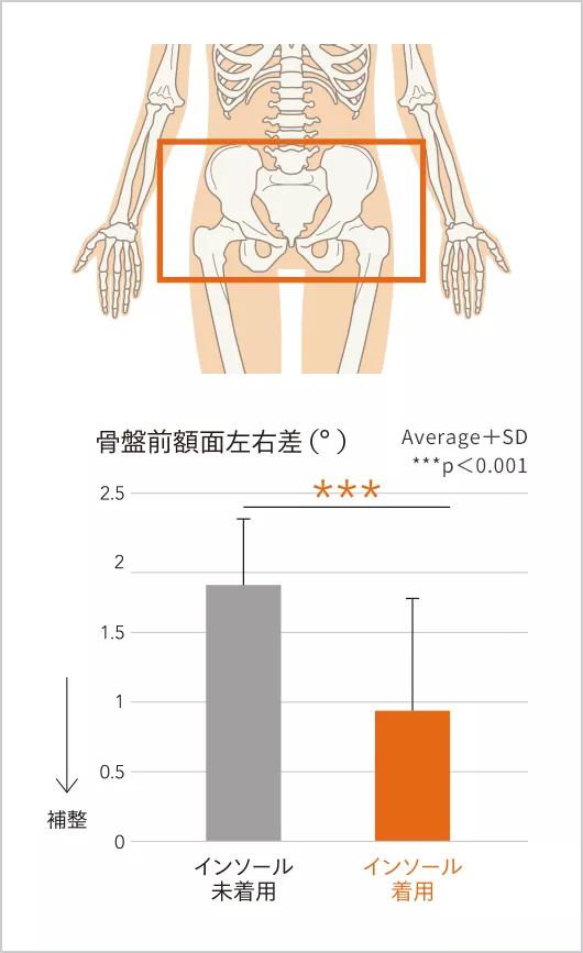インソール着用時に 骨盤の左右差(骨盤前額面角度)が有意に改善