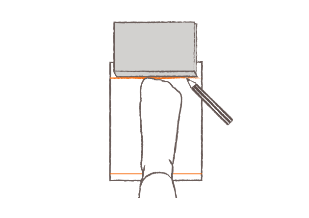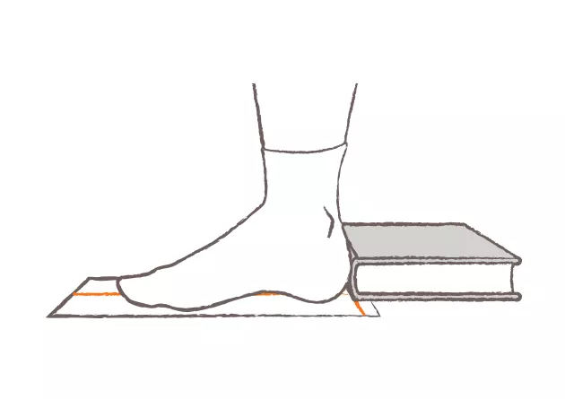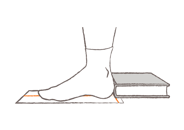 線を引いた紙の上にまっすぐ立ち、かかとは厚めの本や壁などに沿って横線にぴったり合わせます。
