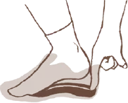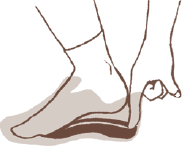 ③ インソールのかかと部分を指や靴ベラなどで押さえながら、インソールがずれないように足を入れてください。足が入ったら、かかとを軽くトントンしてください。