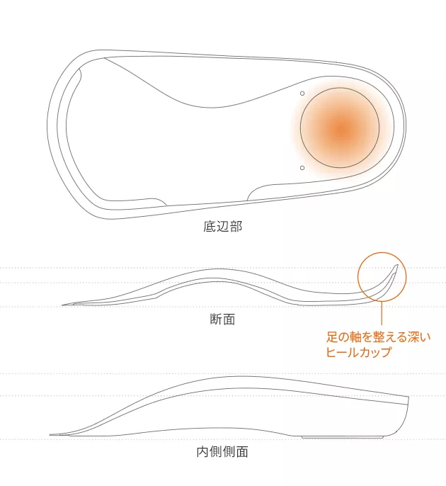 適したタイプ足の軸を支えるかかとを整えるために、ヒールカップを深めに設計し、着用することで、足の軸をまっすぐに整え、骨盤を整えます。