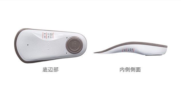 着用時に足裏の形を整えることで姿勢を整えるインソールです。独自の形状により、足裏でも重要なアーチ(土踏まず)の高さとヒール(かかと)の軸を整えます。体の土台である足裏を整えることで、脚部をはじめとした姿勢を整えます。